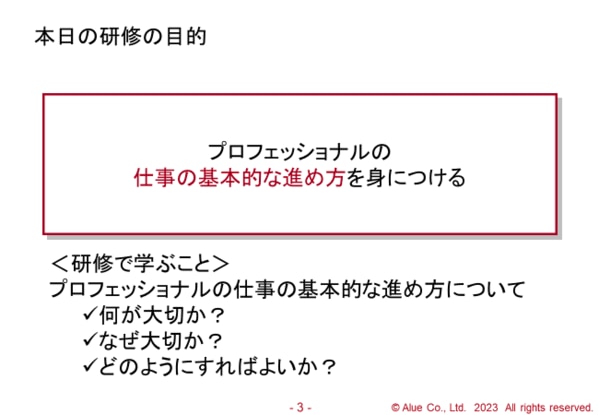 ▼研修の目的スライドのイメージ