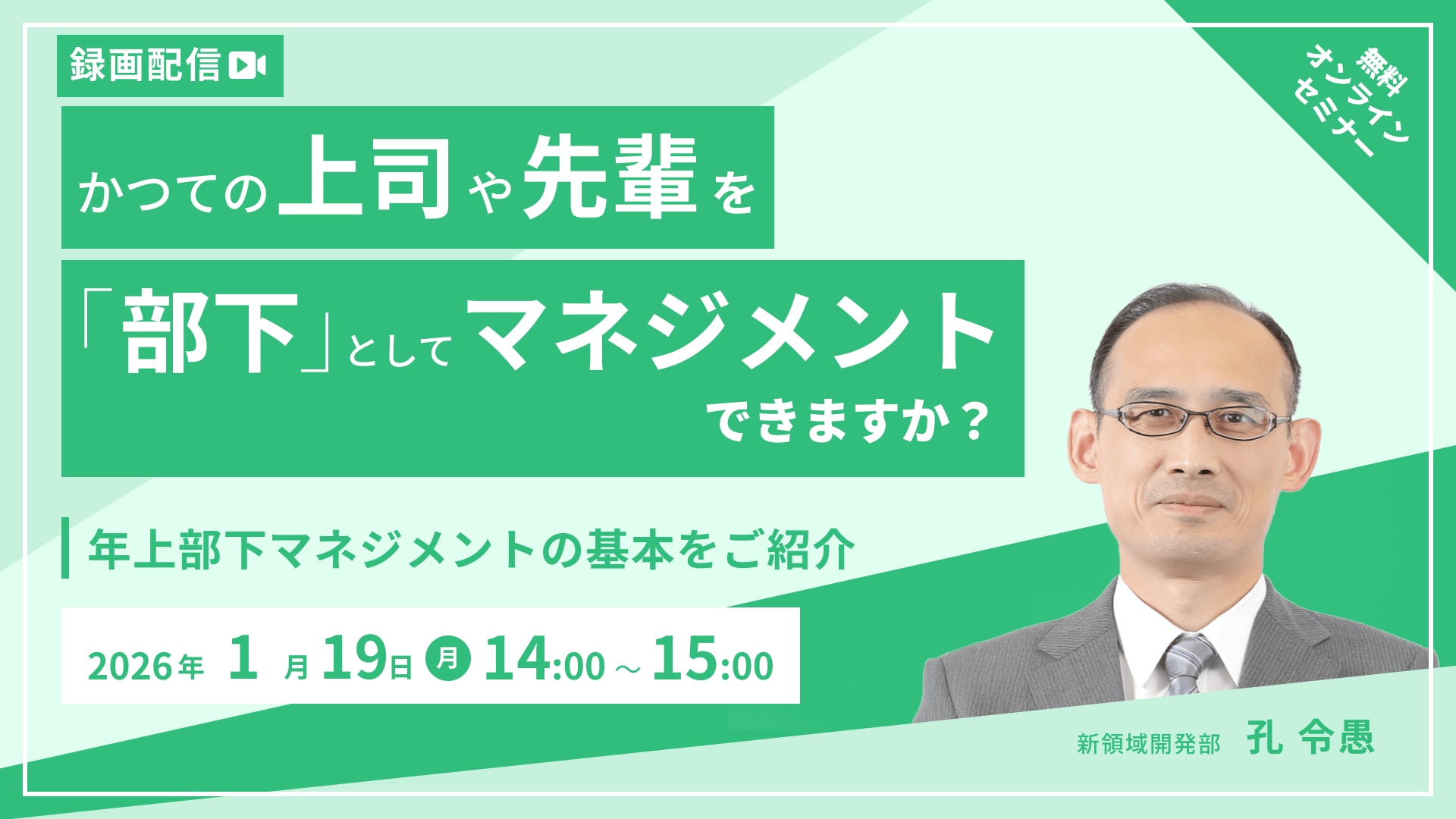 2026年1月19日 【オンデマンド】かつての上司や先輩を「部下」としてマネジメントできますか?~年上部下マネジメントの基本~